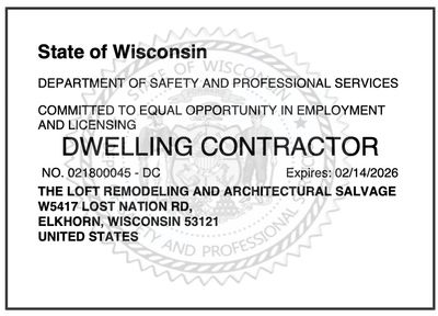 We are licensed through the State of Wisconsin as a General Contractor. This means we had to pass an exam on residential building codes and other important areas that will make sure your project is done right the first time.